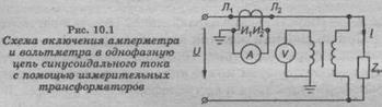 Измерения тока и напряжения в цепях синусоидального тока мало чем отличаются от измерений в цепях постоянного тока. Как уже указывалось, верхний предел измерения амперметров можно увеличить с помощью специальных шунтов. С этой же целью для амперметров применяют трансформаторы тока, а для вольтметра — трансформаторы напряжения . Схему с использованием измерительных трансформаторов напряжения применяют при измерениях в сетях напряжением выше 1 кВ.
