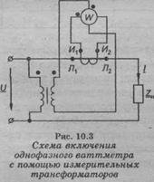 При включении обмоток ваттметра через измерительные трансформаторы (рис. 10.3) цену деления ваттметра определяют с учетом коэффициентов трансформации kI трансформатора тока и kU трансформатора напряжения: