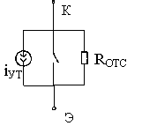 Еще один режим работы транзистора, относящийся к ключевому, носит название режима отсечки. Перевести транзистор в режим отсечки можно приложением между базой и эмиттером обратного напряжения, тем самым «подпирая» диод VD2. В режиме отсечки транзистор можно также заменить разомкнутым ключом, схема замещения которого представлена на рис.3 Транзистор в режиме отсечки имеет близкое к бесконечному сопротивление RОТС и небольшой ток утечки р-n перехода iУТ . В справочных данных для режима отсечки приводятся обратный ток базы iКБО и обратный ток коллектора iКЭО .