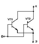 Великий соблазн для разработчика импульсной техники состоит в использовании в силовых цепях составного Дарлингтоновского транзистора. Большинство одиночных силовых транзисторов имеют коэффициент усиления по току порядка 10...20. Если, скажем, в силовой цепи необходимо получить ток 10 А, нужно подавать в базу ток не менее 0,5...1 А. То ли дело составной транзистор. В этом случае можно обойтись и десятками миллиампер. Схема управления источником значительно упрощается, повышается ее КПД, надежность. Но при параллельном соединении составных транзисторов КТ834А были посчитаны по всем вышеприведенным правилам выравнивающие резисторы, однако при включении схемы происходил крайне неравномерный прогрев корпусов. Оказалось, что в данном случае пользоваться приведенной выше методикой для расчета выравнивающих резисторов нельзя.
