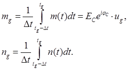 Значения сигнала и помехи в дискретные моменты времени tg = g∆t можно представить в виде