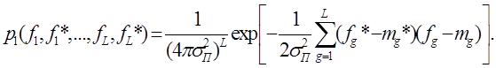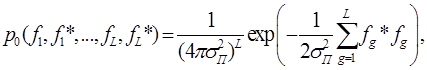 Найдём отношение правдоподобия, определяющее структуру устройства оптимальной обработки одиночного сигнала. Многомерная плотность вероятности дискретных значений входного сигнала fg, в отсутствие полезного сигнала (fg = ng) определяется выражением