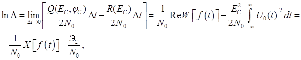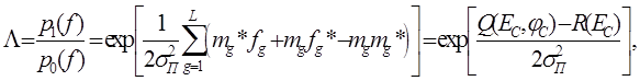 Величина R(Ec) от входного сигнала, т.е. от входной последовательности fgне зависит. Поэтому решение о наличии или отсутствии полезного сигнала можно принимать по величине Q(Ec, φc), зависящей от входного сигнала и монотонно связанной с отношением правдоподобия: