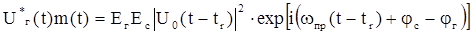 во-вторых, перемножение принятого и опорного сигнале о помощью смесителя - перемножителя, в результате которого происходит внутриимпульсная демодуляция полезного сигнала, т.е. устранение внутриимпульсной фазовой или частотной модуляции, и формирование радиоимпульса на промежуточной частоте, форма которого определяется квадратом амплитудного закона модуляции сигнала: