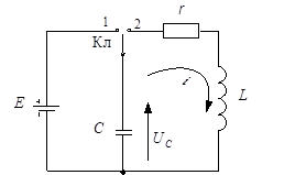 Для изучения физических основ процесса генерации обратимся к обычному контуру с высокой добротностью Q >> 1 (рис. 8.14). Если контуру сообщить некоторую энергию, зарядив, например, конденсатор С (положение ключа 1), а затем отключить источник и подключить конденсатор к контуру (положение ключа 2), то в контуре возникнут свободные колебания.