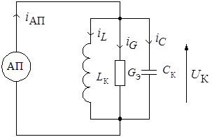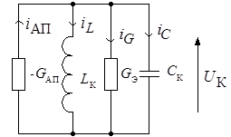 Изобразим активный прибор через его проводимость – G АП и представим эквивалентную схему автогенератора (рис. 8.22) по переменному току в следующем виде (рис. 8.23):