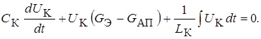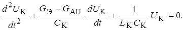 Уравнение (8.13) получило название дифференциального уравнения автогенератора. Оно является нелинейным дифференциальным уравнением второго порядка, так как коэффициент при первой производной G АП (крутизна вольт-амперной характеристики нелинейного элемента) зависит от переменной U К и совпадает с дифференциальным уравнением колебательного контура (тема 3.1). В общем случае решения уравнений такого типа неизвестны. Существуют приближенные методы, позволяющие получить результаты с заданной степенью точности (особенно на ЭВМ). Следует однако иметь ввиду, что в начале зарождения колебаний амплитуда их очень мала и рабочая область на характеристике будет линейной, где бы не находилась рабочая точка. Это означает, что G АП (крутизна вольт-амперной характеристики нелинейного элемента) не будет зависеть от U К и дифференциальное уравнение окажется линейным. Общим решением такого уравнения (8.13) является временная зависимость напряжения на колебательном контуре: