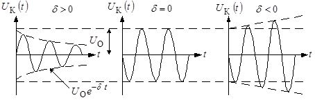 и зависит от коэффициента затухания d. При d > 0 (рис. 8.24 а) свободные колебания в контуре будут затухающими, так как проводимость потерь превышает проводимость активного прибора (G