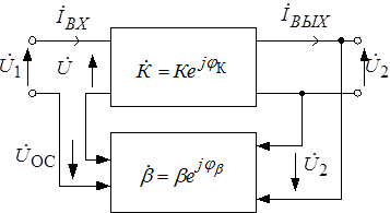Пусть с выхода усилителя часть выходного напряжения через цепь обратной связи подается на его вход. При условии, что на выходе цепи обратной связи сигнал по амплитуде и по фазе равен внешнему сигналу, т.е.