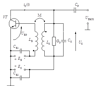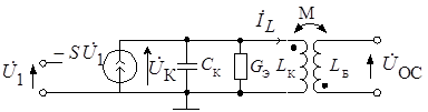 Входная и выходная проводимости транзистора пересчитаны к контуру и учтены в G Э . Напряжение обратной связи, снимаемое с L Б , определяется выражением