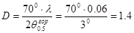 Из условия получения указанной на проектирование ширины диаграммы направленности в горизонтальной плоскости