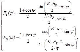Диаграмму направленности небольшого рупора можно рассчитать при помощи следующих приближенных соотношений:
