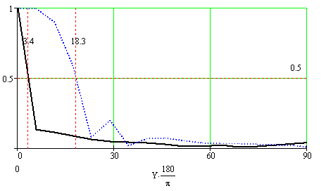 - ширина ДН по уровню 0.5 в плоскости направляющей;