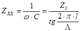 Параллельная емкость реализуется в виде параллельного шлейфа разомкнутого на конце. Реактивное сопротивление такого отрезка линии определяется по формуле