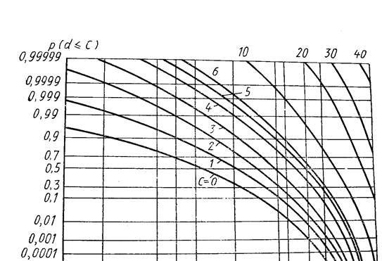 Приемочное число С и необходимый объем выборки n определяют по графику распределения Пуассона (рис.2.10) Для этого находят точку пересечения кривой при С = 0 с горизонтальной линией, представляющей, вероятность того, что в выборке при заданном риске а изготовителя имеются отказавшие изделия т. е. р(d>С)=1-a .