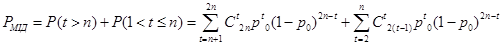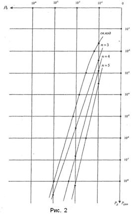 відповідає ймовірності 1-кратної помилки. Двократна помилка визначається наявністю 2-х помилкових біт одночасно що відповідає ймовірності
