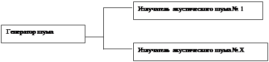 Зразковий вид структурної схеми джерела акустичного шуму приведений на рис. 1. Конструктивно апаратура включає блок формування і посилення шумового сигналу і декілька акустичних випромінювачів.