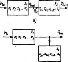 Если неисправный телевизор (блок, модуль, каскад) после исключения вспомогательных элементов заработал, то значит, дефектный элемент х'i , находится в области вспомогательных элементов X'; если не заработал — дефект среди основных элементов. Таким образом, рассматриваемый метод состоит в том, чтобы из неисправного телевизора изъять на некоторое время вспомогательные элементы и проанализировать после этого работу телевизора (блока, модуля, каскада) (рис. 6).