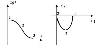 Для затухающего монотонного процесса (рис.7а) фазовая траектория приведена на рис.7б.