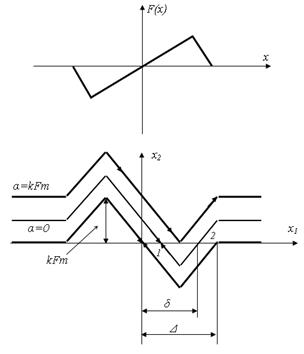 С этой целью линеаризируем дискриминационную характеристику в окрестности точек равновесия системы и представим ее зависимостью