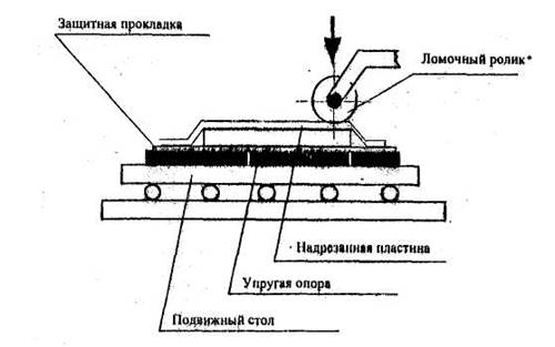 Наиболее распространенными являются методы разламывания проскрайбированных пластин сферой, полуцилиндром и валиком.