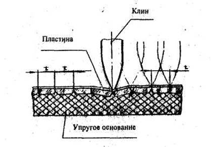 При больших значениях параметров отношения 1/Н вместо валика применяют клин с небольшим радиусом скругления, который последовательно ориентируют по линиям скрайбирования полупроводниковой пластины (Рисунок 5). Усилие нагружения при разламывании клином должно быть программируемым.