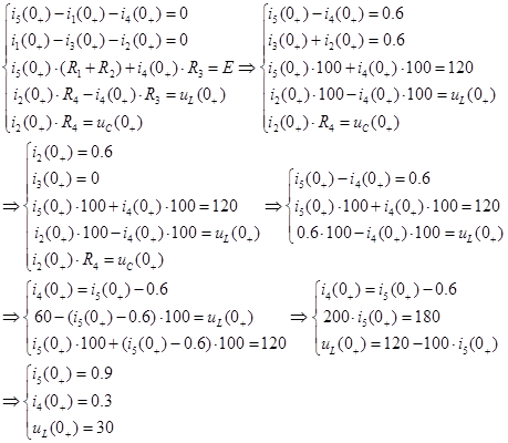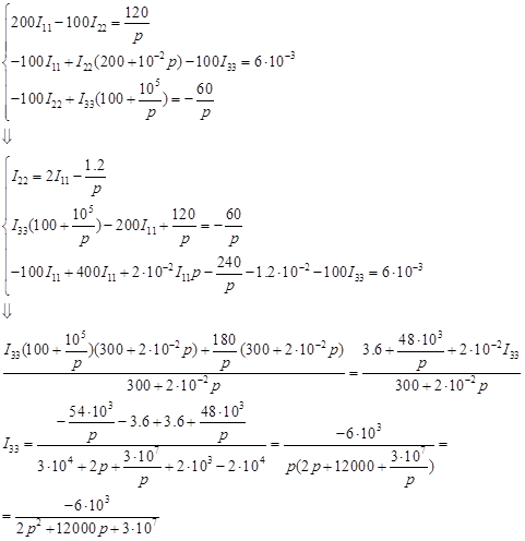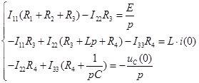 используем систему уравнений, применявшуюся при расчете цепи операторным методом, заменив в ней ненулевые начальные условия на нулевые: