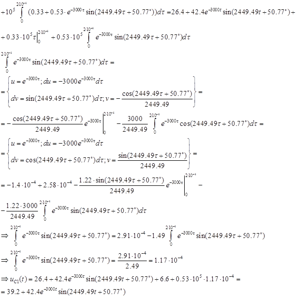 Если воздействие имеет сложную форму, имеет скачи тока или напряжения, то интервал интегрирования разбивается на отдельные участки, и реакция цепи определяется для отдельных участков. При этом результаты не суммируются, а описываются для отдельных участков.