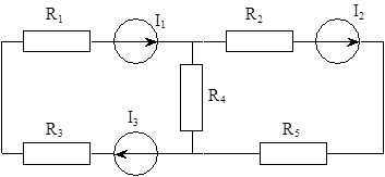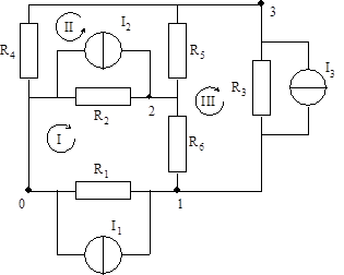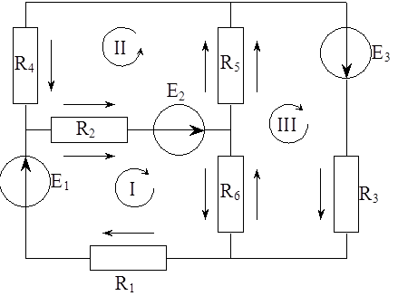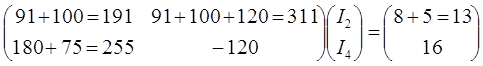 Для этого, рассчитаем напряжение между точкам А и Б методом контурных токов: