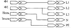 Исходя из того, что на вынос подается однофазное питание, схема подключения питающих клемм к щиту системы электропитания будет выглядеть так, как показано на рис. 3.1.