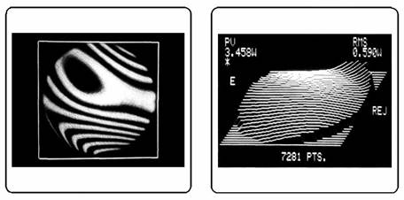 Интерференционная картина выводится на телевизионный экран (рис. 3). Отклонение определяется по числу интерференционных полос (колец) на экране телевизионного интерферометра (рис. 4).