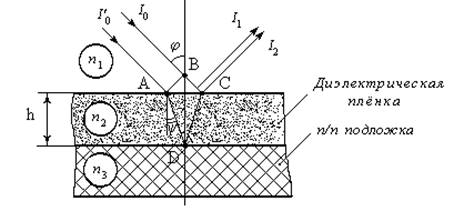 Рис. 5. Ход лучей в системе «плёнка-подложка» при измерении толщины плёнки