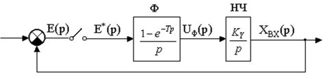 Як видно з рисунка, у прямого ланцюзі системи є найпростіший імпульсний елемент (фіксатор) і безупинна частина (інтегруюча ланка).