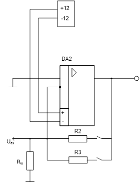 ПП – первинний перетворювач, призначений для перетворення струму в напругу. Схема основана на ОП К544УД2А. Межі вихідної напруги 10В;