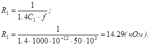 Оскільки частота f= 50 кГц, задавшись ємністю конденсатора С1 =1000 пФ розрахуємо значення резистора R1 :