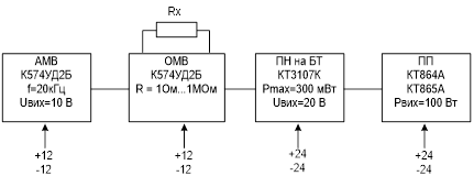 ПП – підсилювач потужності, використовується для забезпечення потужності на навантаженні.