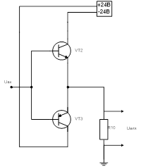 Для підсилення потужності використаємо комплементарний емітерний повторювач.