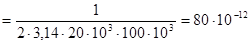 =1кОм, 100кОм, , знаючи межі, в яких змінюється опір проведемо розрахунок ємності конденсатора. Оскільки значення опорів змінюються в досить великих межах, то ємність конденсатора розрахуємо для кожного під діапазонну окремо.