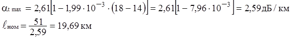 atmax—коэффициент затухания кабеля на верхней частоте линейного спектра К60П при максимальной температуре грунта.(для 252 кГц).