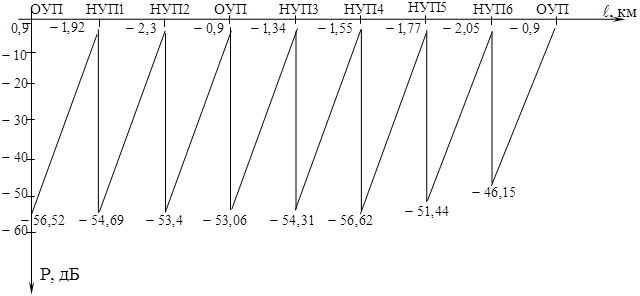Расставим магистральные выравниватели. Они должны находиться друг от друга на расстоянии 60-80 км, причем желательно, чтобы усилительный участок был меньше номинального на 1-2 км.