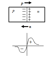Вследствие того, что концентрация электронов в n области выше, чем в р-области, а концентрация дырок в р-области выше, чем в n области, на границе этих областей существует градиент концентраций носителей, вызывающий диффузионный ток электронов из n области в p область и диффузионный ток дырок из p области в n область. Кроме тока, обусловленного движением основных носителей заряда, через границу раздела полупроводников возможен ток неосновных носителей (электронов из р области в n область и дырок из n области в p-область). Однако, они незначительны (вследствие существенного различия в концентрациях основных и неосновных носителей) и мы их не будем учитывать.