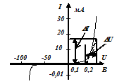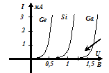 Из таблицы и формулы (1.1) следует, что при положительных (прямых) напряжениях ток через р-n переход с увеличением напряжения резко возрастает, поэтому