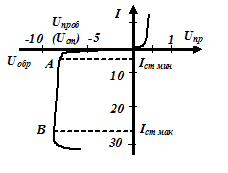 Iст min – минимальный ток стабилизации, наименьшее значение тока стабилизации, при котором режим пробоя устойчив;