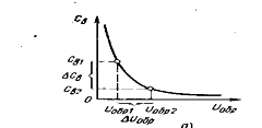 Основной характеристикой варикапа служит вольт-фарадная характеристика (рисунок 1.9) – зависимость емкости варикапа Св от значения приложенного обратного напряжения. В выпускаемых промышленностью варикапах значение емкости Св может изменяться от единиц до сотен пикофарад.