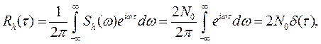 Корреляционная функция белого шума, являясь обратным преобразованием Фурье энергетического спектра, равна