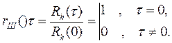 т.е. представляет собой дельта-функцию, а нормированная корреляционная функция для белого шума (рис.5):