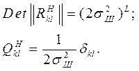 При этом определитель корреляционной матрицы шума и элементы обратной корреляционной матрицы шума описываются следующими выражениями: