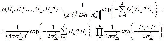 Многомерная плотность вероятности шума оказывается произведением соответствующих плотностей вероятности для различных дискретных значений шума: