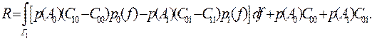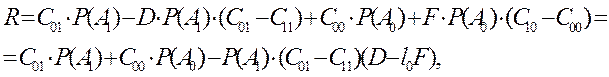 R = C11 P(A1) P(A1*/A1) + C01 P(A1) P(A0*/A1) + C10 P(A0) P(A1*/A0) + C00 P(A0) P(A0*/A0)
