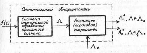Отношение правдоподобия (или любая монотонная функция его) является отражением структуры оптимальной системы обработки принятого сигнала в структуре оптимального обнаружителя (рис.7).